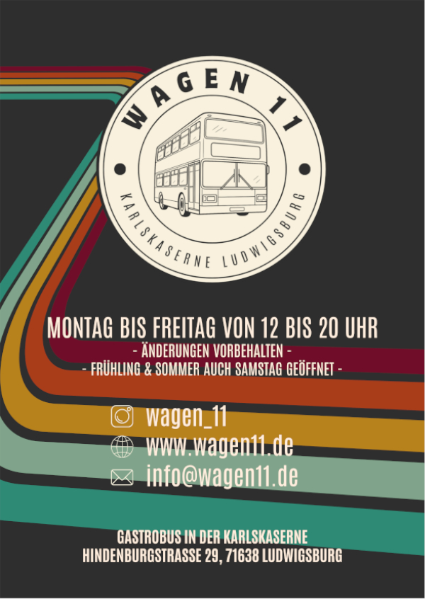 Der Gastrobus Wagen 11 ist von Montag bis Freitag vor Ort. Mehr zum Gastrobus Wagen 11 unter wagen11.de und auf Instagram: www.instagram.com/wagen_11.
